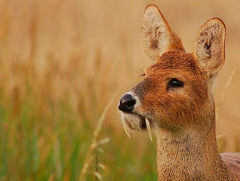 El venado acuático chino, por sus sobresalientes colmillos, ha recibido el apodo de "ciervo vampiro".