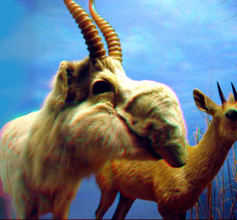 La nariz larga y móvil le permite al antílope saiga filtrar el polvo y calentar el aire frío.