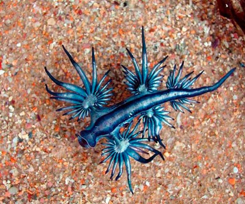 El Glaucus atlanticus es conocido también como el "dragón azul", pero se trata de una babosa marina.