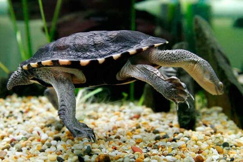 Las tortugas de cuello largo viven en Australia. Sus cuellos pueden llegar al tamaño de sus caparazones.