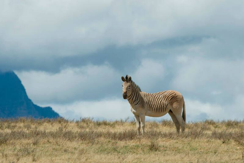 En un espectacular valle a dos horas de Ciudad del Cabo, los visitantes pueden cruzarse con estos animales, salidos directamente de los libros de cuentos: cebras, con rayas negras y blancas desde el hocico hasta el vientre, y pelaje de color pardo claro hasta la cola.
