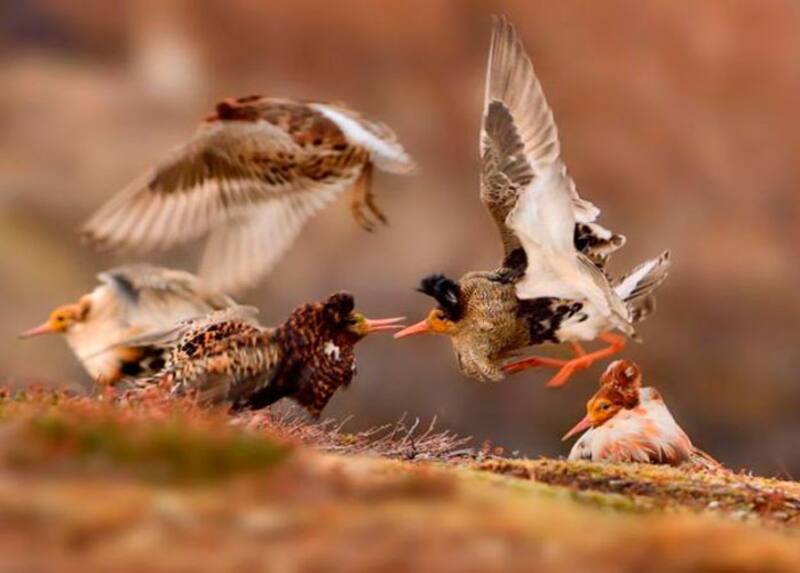 Con 14 años, Ondrej Pelánek, de la República Checa, se llevó el mayor galardón en la categoría para jóvenes. El título de la foto describe la escena: “Combatientes peleando”. Combatiente es el nombre común con el que se conoce al Philomachus pugnax. (Foto: Ondrej Pelánek/WPY2015)