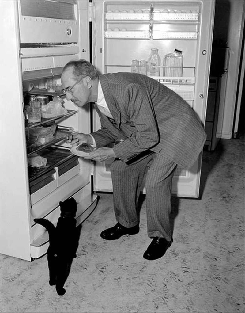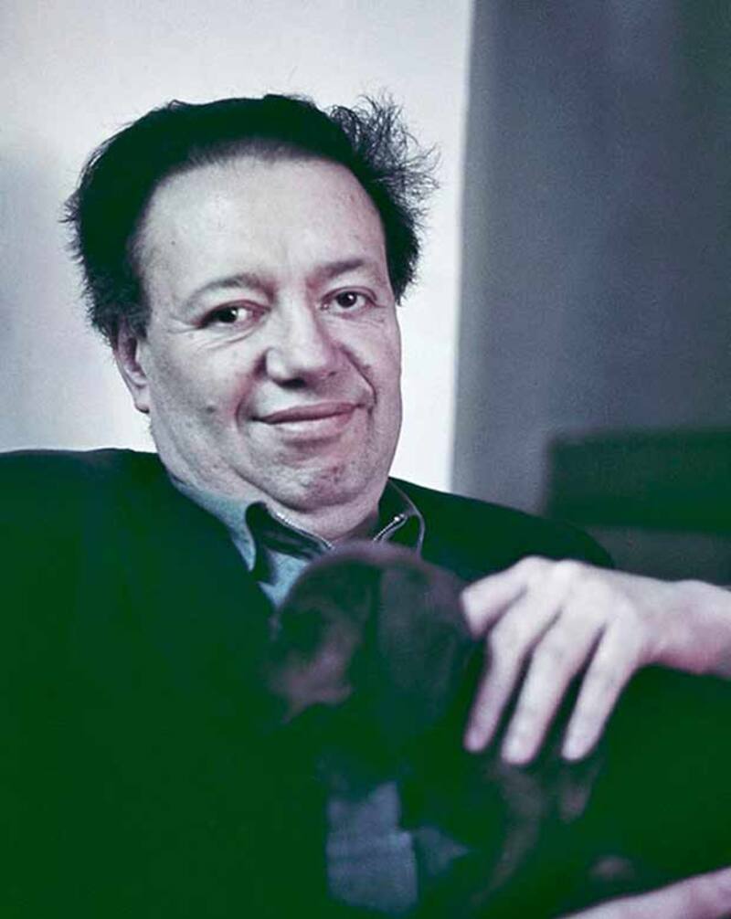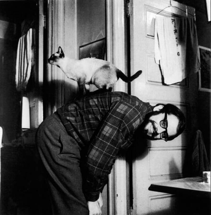 El escritor argentino Julio Cortazar con su gata Flanelle.