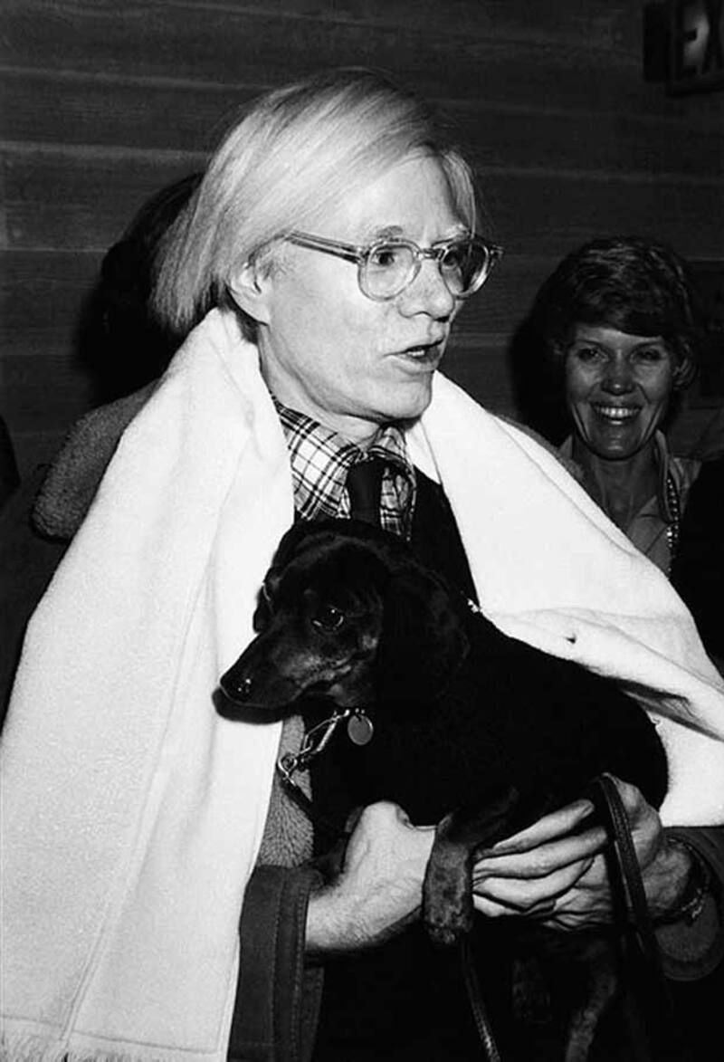 El pintor estadounidense Andy Warhol con su perro Archie.