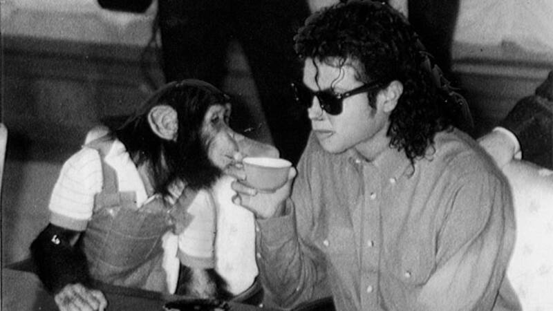 El músico estadounidense Michael Jackson con su mono Bubbles.