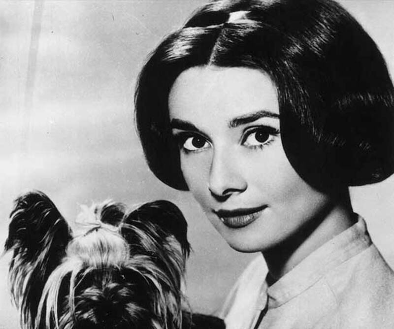 La actriz estadounidense Audrey Hepburn con su perro Mr. Famous.