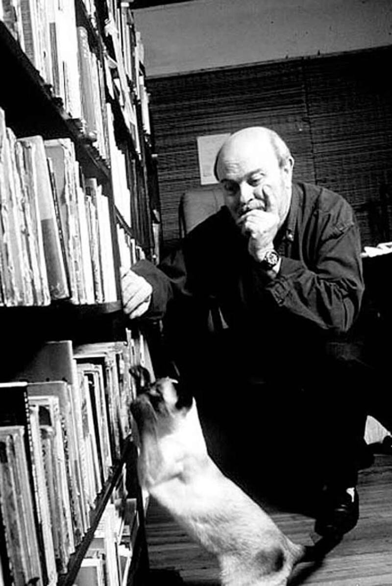 El periodista y novelista argentino Osvaldo Soriano con su gato.