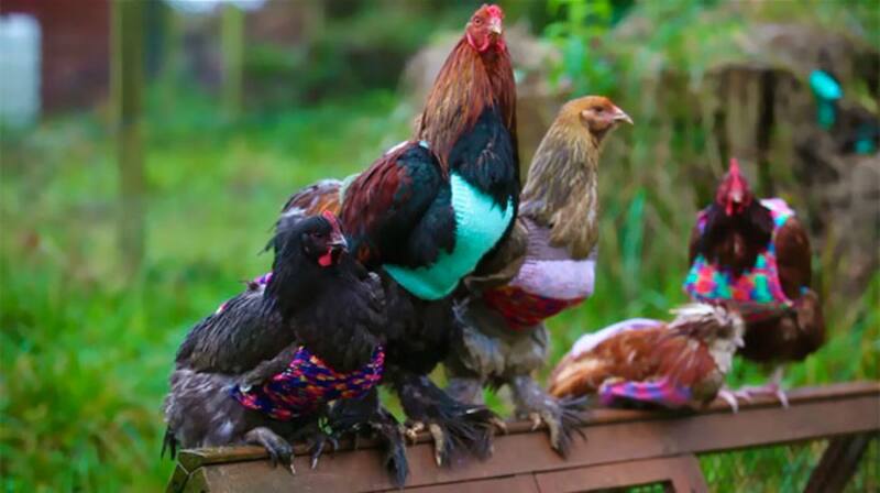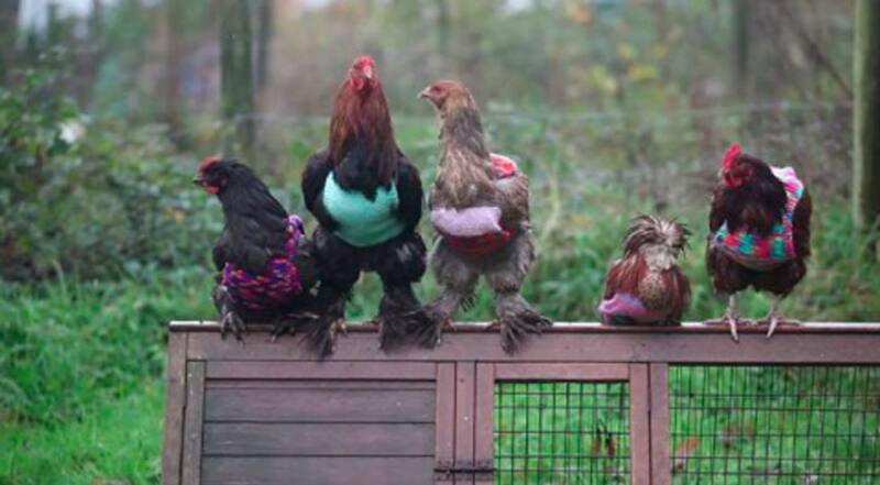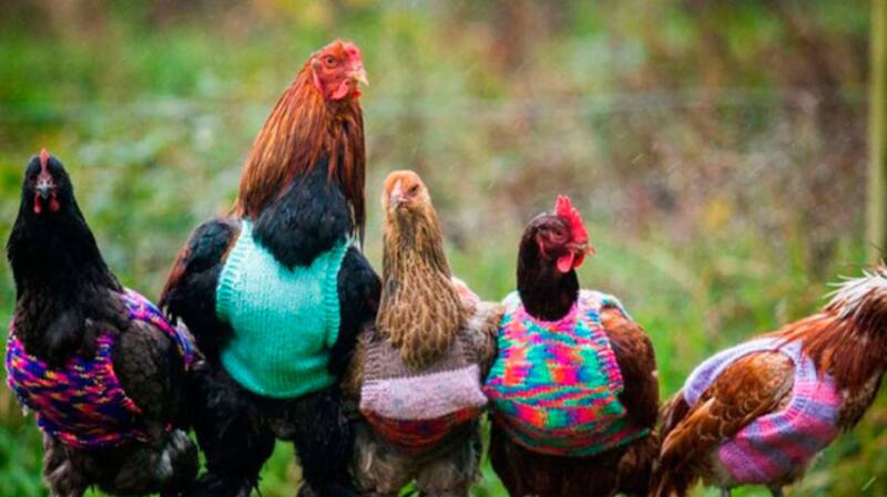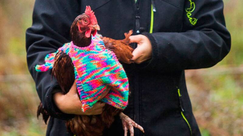 Y esto que puede sonar a una tomadura de pelo es la pura verdad nomás, porque dos mujeres inglesas decidieron tejerles chalecos a gallinas que, por viejas, producto de maltratos o porque pasaron toda su vida encerradas en diminutas jaulas, perdieron su plumaje.
