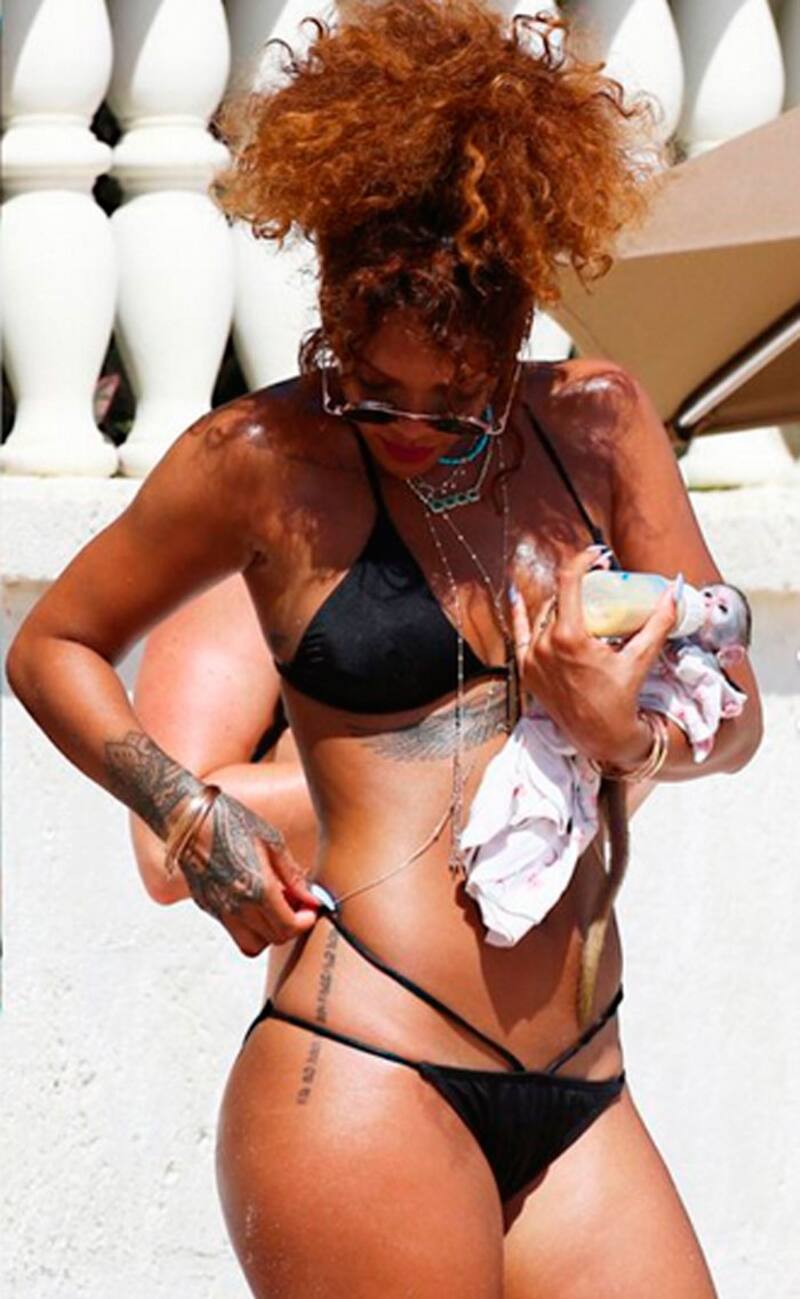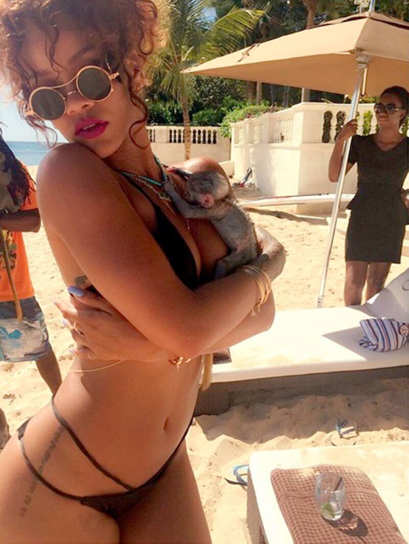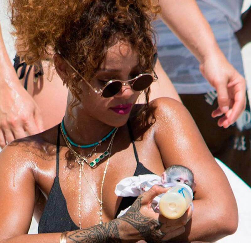 Claro, porque la muñeca se dio el gustito de alimentar con una mamadera a un pequeño monito durante sus vacaciones en su natal Barbados.