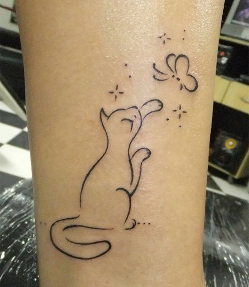 A diferencia de muchos otros que suelen verse en la web y en la vida real, los tatuajes de gatos que hoy te presentamos tienen la característica común de ser simples, algunos tanto que más parecen una raya que un cuchito.