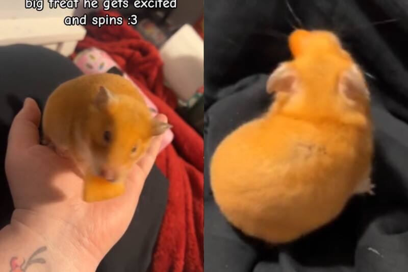 Un hámster se hizo viral por su tierna y curiosa reacción al recibir alimento: empieza a girar.