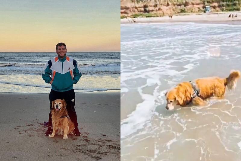 En sus redes dejó varios videos de cómo el golden disfrutaba del agua y la playa. Un clip que ha sido muy viral y replicado en distintos medios.
