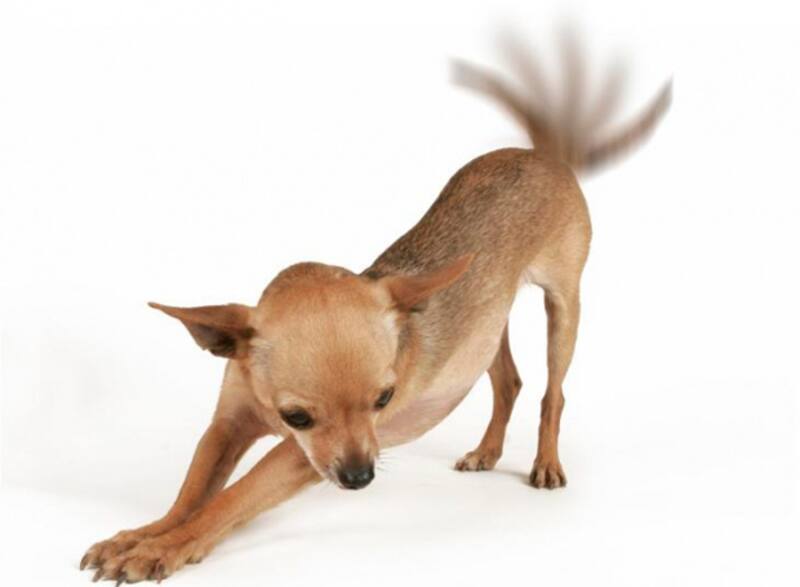 Si se echa con las patas delanteras estiradas en posición de reverencia es una invitación al juego, sólo si el perro mueve sus patas delanteras de un lado a otro de forma juguetona. Si permanece quieto, inclinado, es más probable que se trate de una señal de calma.