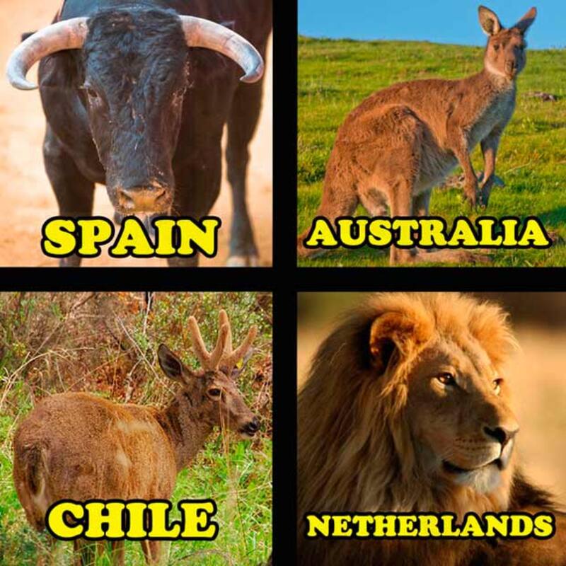 Aunque los chilenos sabemos que no será así, según los amigos de Buzzfeed el toro español y el león de Holanda se encargarán del canguro australiano y el huemul de Chile.