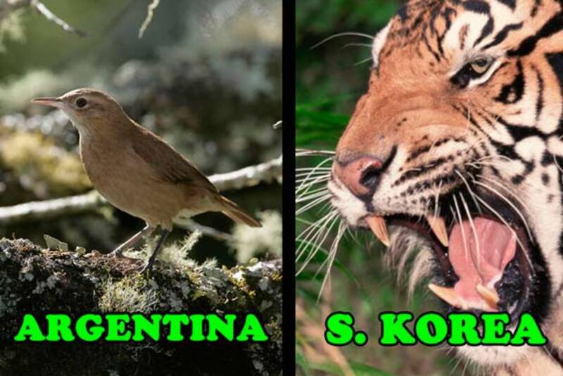 El pájaro hornero de Argentina es devorado por el tigre surcoreano, pero no muere y picotea su salida a través de la garganta del felino, matándolo en el proceso.