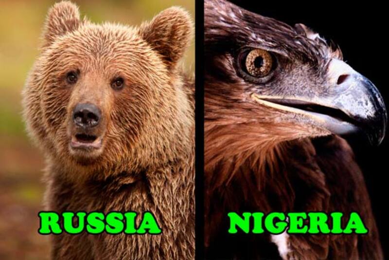 Un solo golpe con su pezuña le basta al oso ruso para dar cuenta del águila nigeriana.