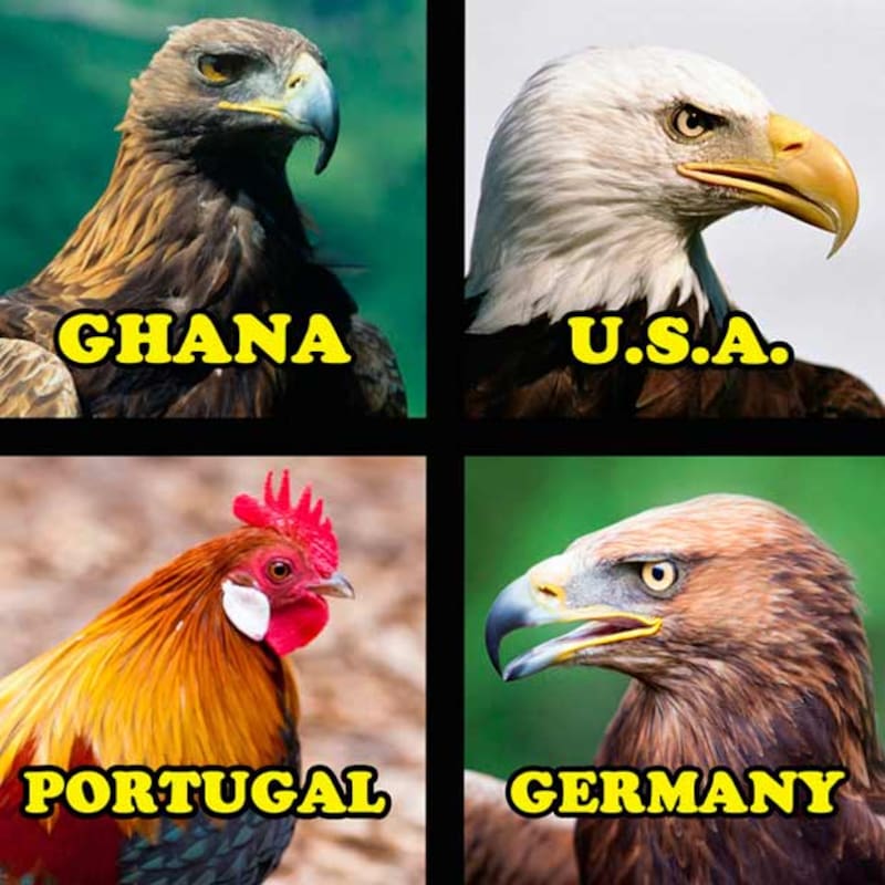Tres águilas y un pobre gallo se ven las caras en este grupo plumífero, y mientras el águila de oro de Alemania devora a su primo de Ghana, el gallo portugués pilla mal parada a la águila calva de Estados Unidos y la deja en el camino.