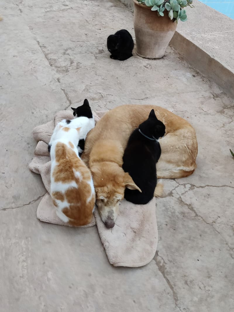 Una de las últimas publicaciones relacionadas con Tam, compartida a inicios de diciembre de 2023 muestra al can descansado junto a varios gatitos que le hacen compañía.