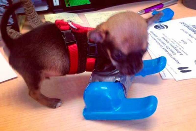 La primera idea que pusieron en práctica fue instalarle un juguete de dos patas, pero la cosa no resultó muy cómoda. Luego de probar con una y otra idea los veterinarios desmantelaron un helicóptero de juguete y con unos tubos construyeron una especie de carretilla que le permite el chihuahua movilizarse de manera autónoma.