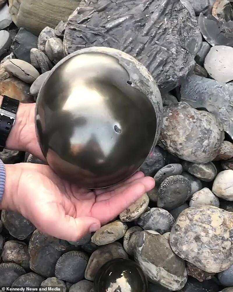 Gracias a su experiencia como coleccionista arqueológico, Aaron sospechó que la roca contenía un fósil por su aspecto brillante y esférico, similar a una baña de cañón.