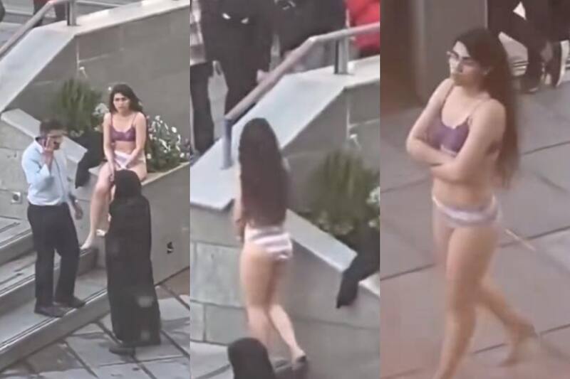 En el video difundido el pasado sábado 2 de noviembre en redes sociales, se ve a la mujer sentada en ropa interior en unos escalones, y luego camina tranquilamente en la zona de la Sección de Ciencia e Investigación de la Universidad Islámica Azad en Teherán, informó BBC.