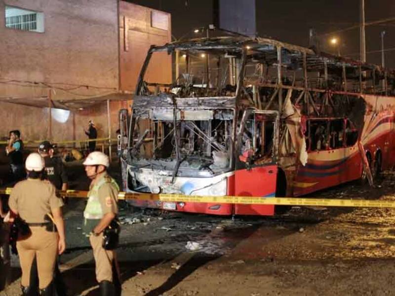 Imágenes de televisión mostraron al autobús completamente quemado en un paradero en el distrito de San Martín de Porres, en las afueras de la ciudad de Lima, que según los bomberos no está autorizado para recoger pasajeros.