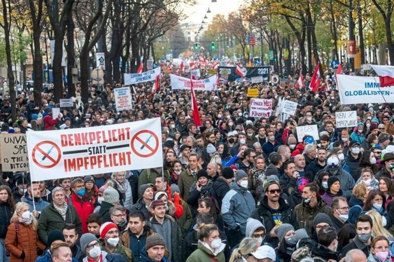 Una de estas es la implementación obligatoria de la vacuna para el general de la población, lo que dio origen a las protestas. “Quiero mi libertad de regreso” y “Paz, libertad, no más dictadura” eran algunas de las consignas de los protestantes manifestaron en contra del plan de vacunación y el aumento de restricciones.
