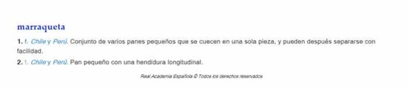 Aquello, porque en su diccionario la RAE indica que la palabra marraqueta se utiliza en Chile y Perú para referirse a "un pan pequeño con una hendidura longitudinal".
