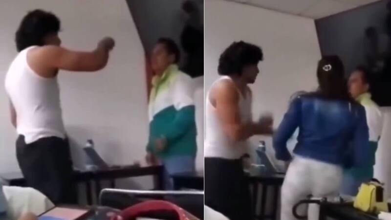 Tal como se puede ver en un registro que se viralizó en redes sociales, el joven golpeó a su profesor en plena aula.