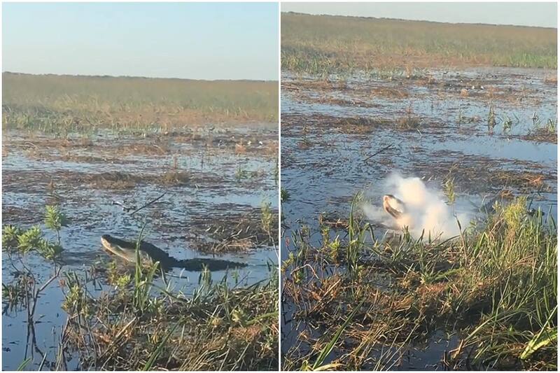 La grabación, que se viralizó en TikTok, muestra el momento exacto en el que el reptil salta fuera del agua para cazar a su "presa" y pronto comienza a expulsar humo.