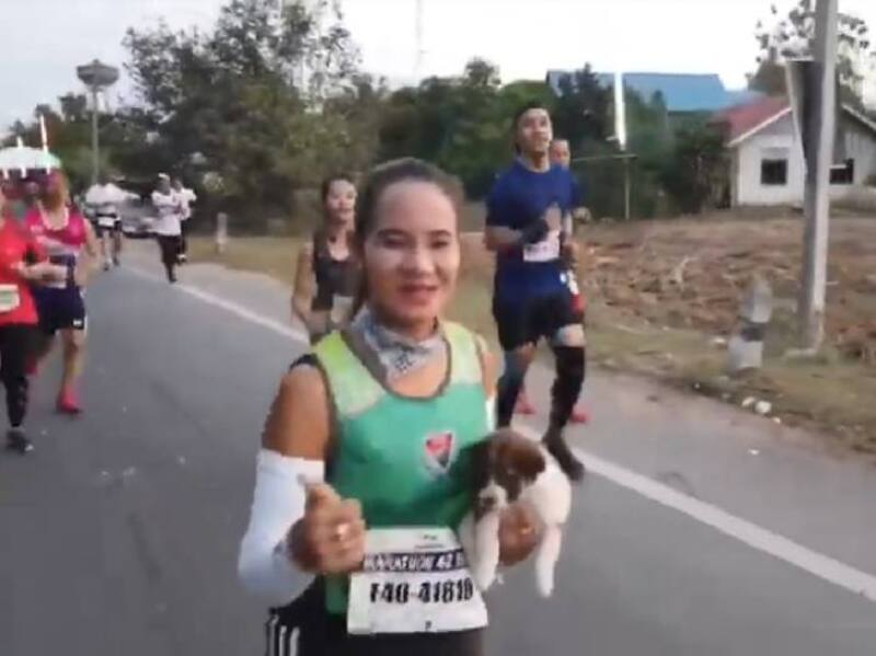 Khemjira Klongsanun, una atleta de 43 años, estaba corriendo la maratón de Chombueng, en Tailandia, cuando atisbó algo con algo inesperado sobre el borde de la calle, deambulando confundido en el asfalto.