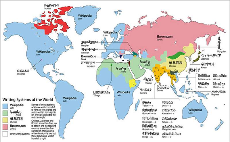 2- La escritura de "Wikipedia" según los diversos idiomas