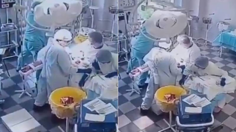 Se trata de un registro que muestra a un equipo médico de la mencionada localidad, el cual se encontraba justamente realizando una delicada cirugía en el momento exacto en el que se registró el movimiento telúrico.