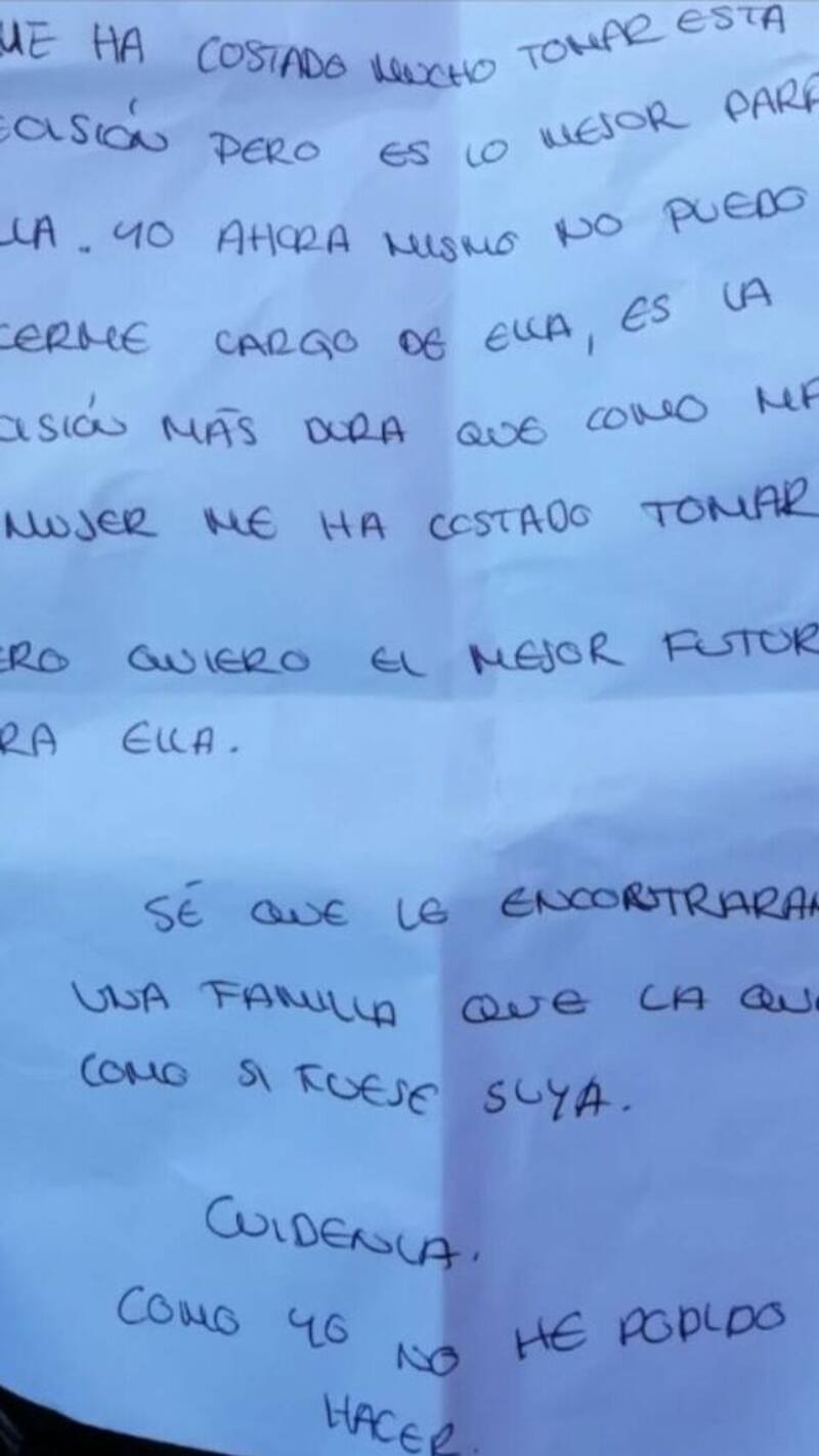 Con una dramática carta en la que expresa sus razones para abandonar a su hija, una mujer hondureña de 23 años fue detenida en España tres días después de llevar a cabo aquella decisión.