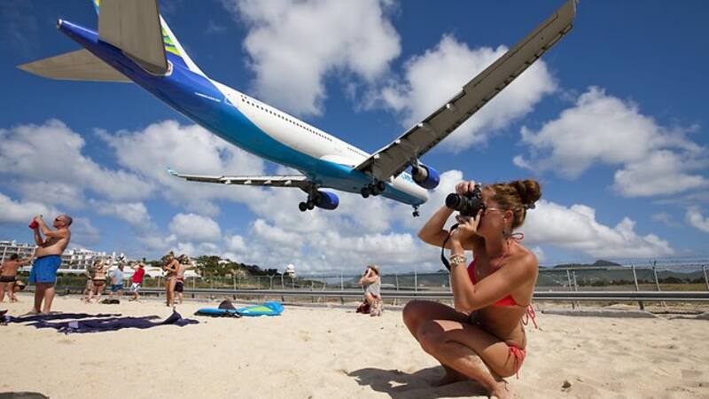 El tramo de arena se encuentra justo al lado del aeropuerto en el sur del país y se ha convertido en una atracción popular para los turistas, quienes se aglomeran para tomarse una foto con un avión pasando justo encima de su cabeza.