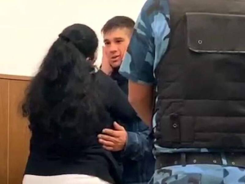 En las imágenes se puede ver cómo la mujer, llamada Nancy López, pide permiso para acercarse al acusado. Al tener el consentimiento del juez, sostuvo el rostro del joven y lo miró a los ojos.
