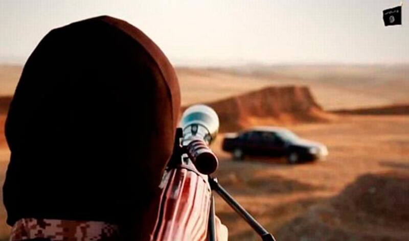 El primero de los asesinatos grupales mostrados en el vídeo es el de cuatro personas que son encerradas en un vehículo aparcado en medio del desierto, al que un yihadista dispara con un lanzagranadas del tipo RPG.