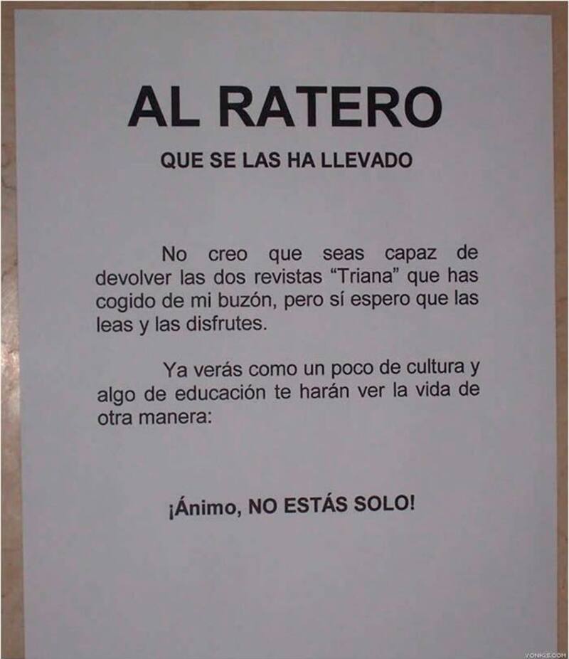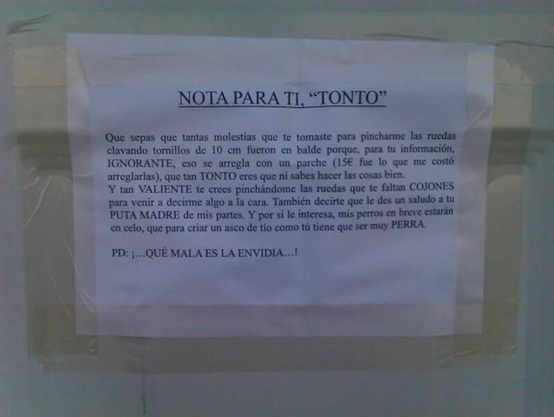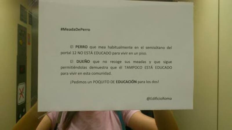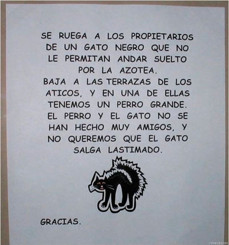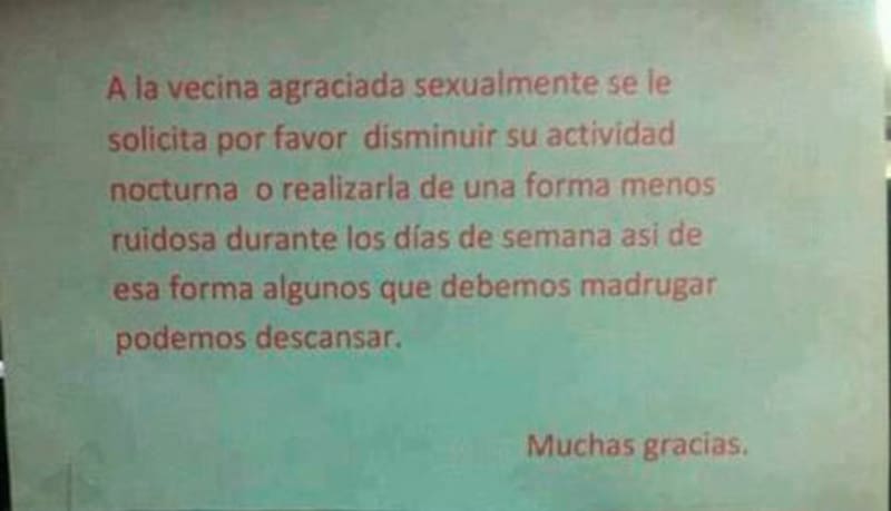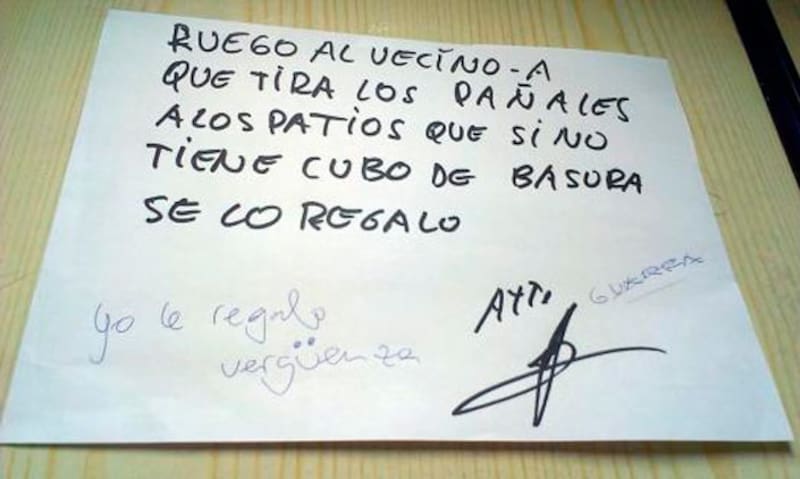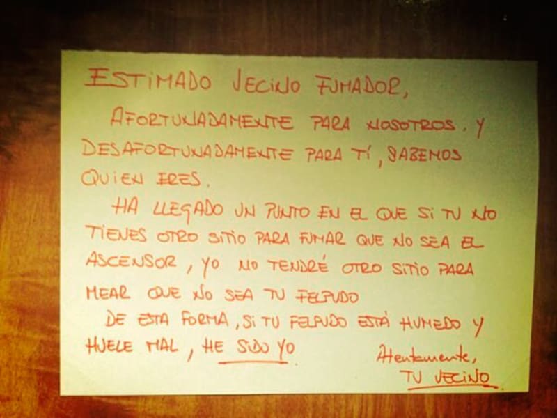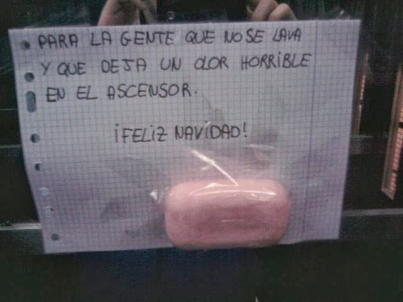Cuando esto último ocurre aparecen los típicos carteles, mensajes que se ubican donde todo el mundo pueda leerlos y que si bien no soluciona el problema, al menos da la oportunidad de descargar la molestia y hacer pasar un mal rato al vecino odioso.