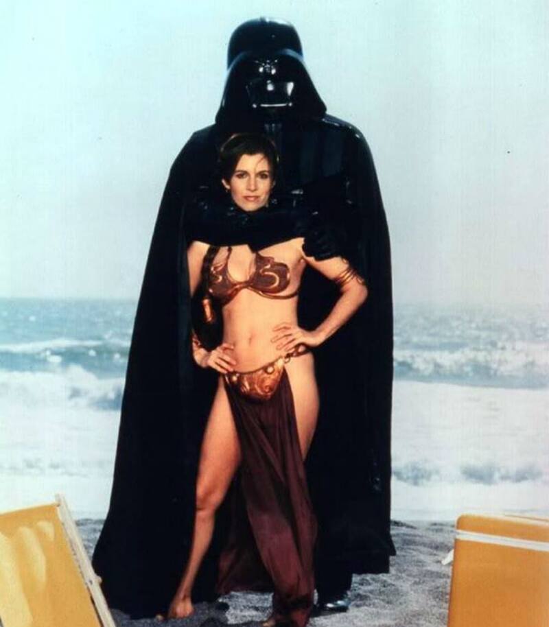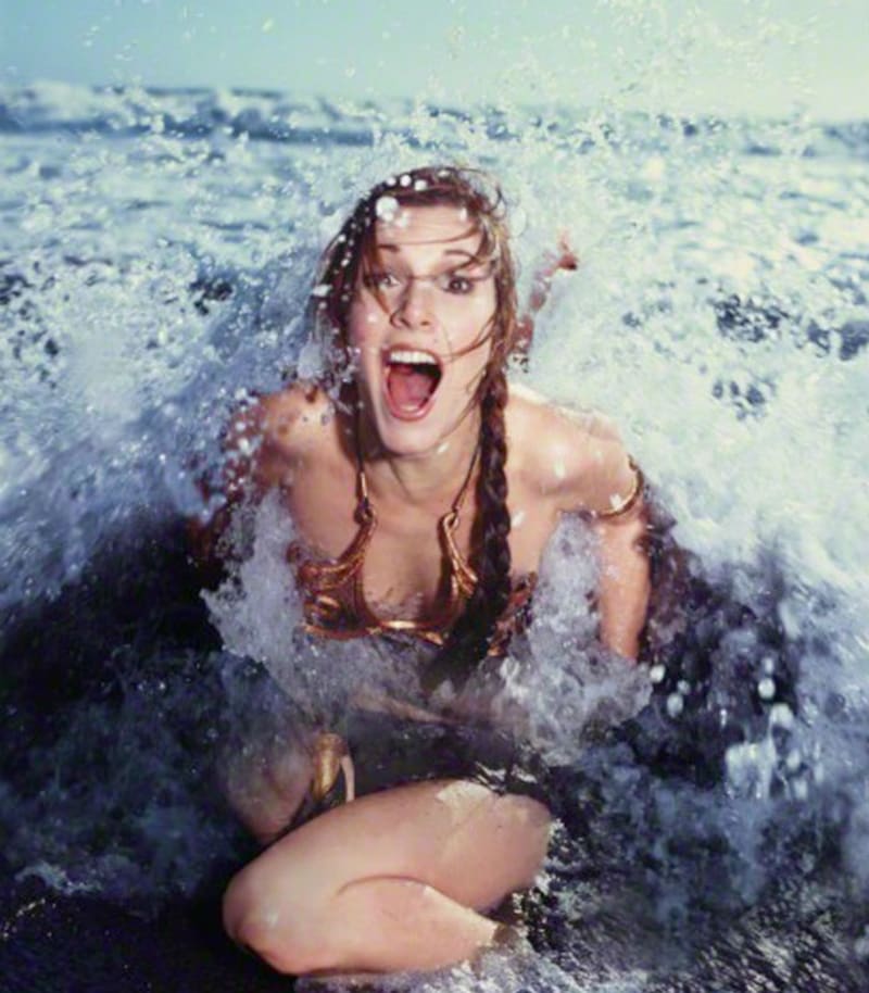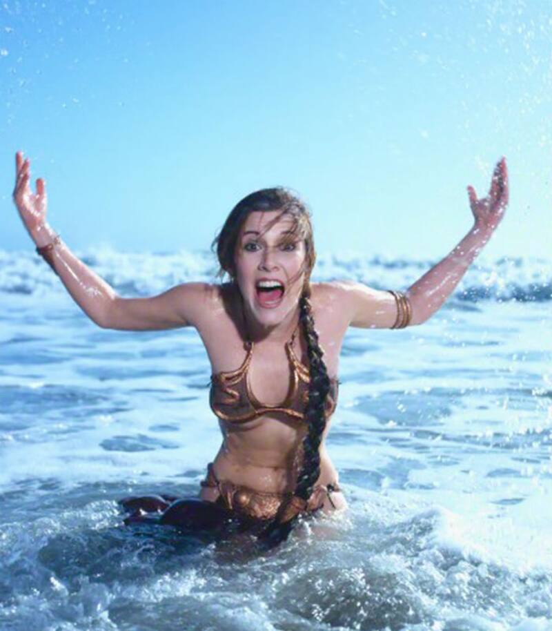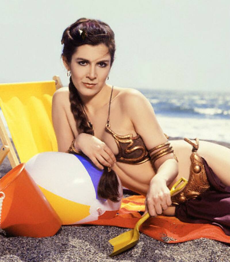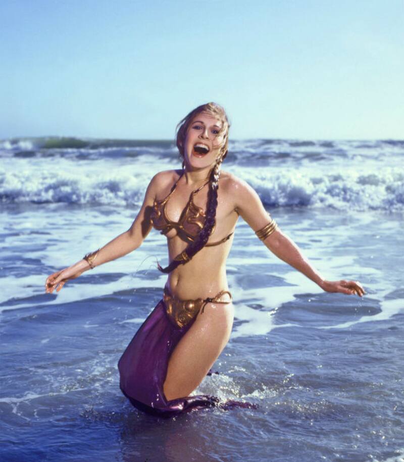 Revisando el baúl de los recuerdos nos encontramos con una sexy y también divertida sesión fotógrafica de 1983 de la actriz gringa Carrie Fiesher, la entrañable Princesa Leia de Star Wars, quien ese año fue tapa de una edición de la revista Rolling Stone en la que era promocionada la peli "El regreso del Jedi".