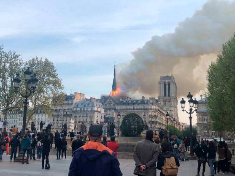 La aguja de la catedral se derrumbó producto de las llamas.