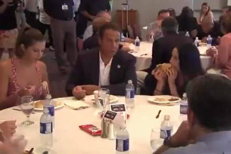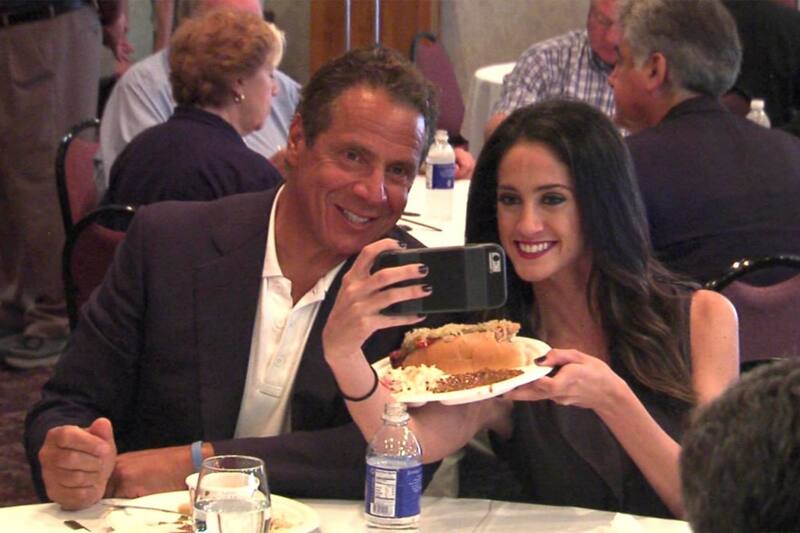 "Cómasela entera": funan a gobernador de Nueva York por hostigar a periodista con vienesa