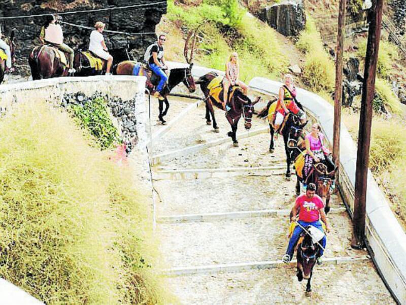 En julio pasado, grupos defensores de los derechos animales en Grecia denunciaron que los burros de Santorini tiene problemas de salud, por ser montados por turistas obesos.