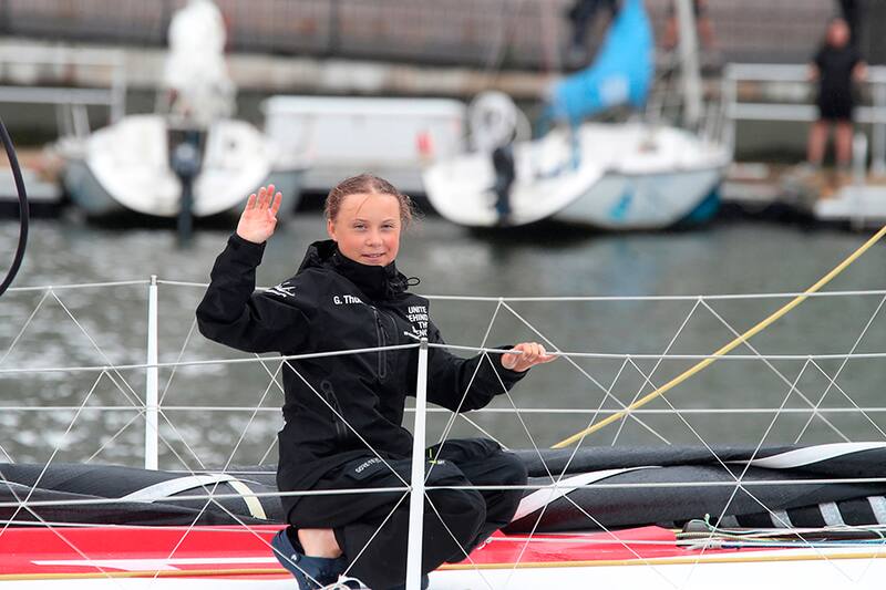 Joven activista sueca de 16 años que lucha contra el cambio climático, pretende llegar en velero a la COP25 que se realizará en Chile en diciembre. Ha inspirado protestas en más de 1.600 ciudades simultáneamente.