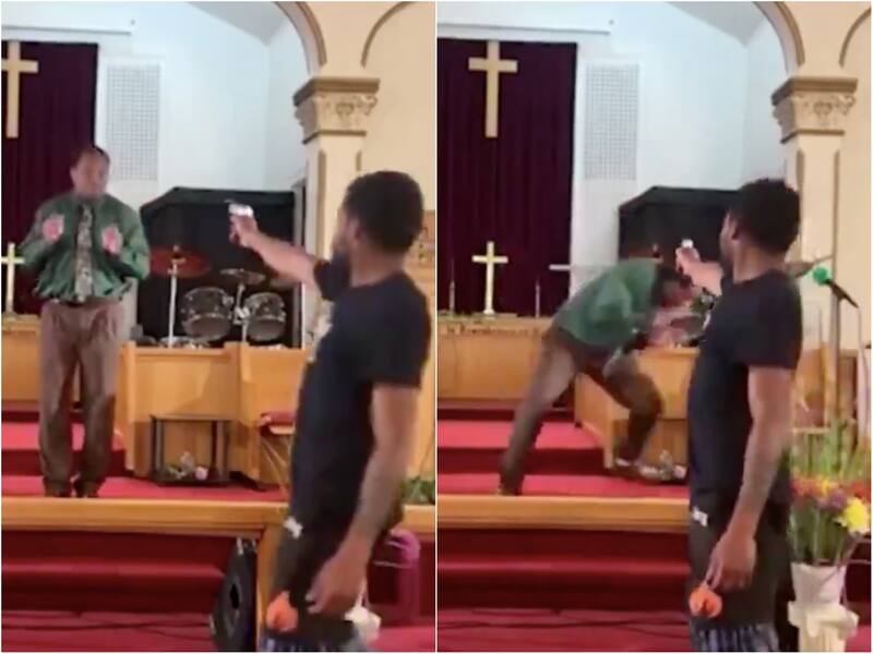 Debido a que el servicio religioso se estaba transmitiendo en vivo, las cámaras captaron el momento exacto en que se produjo el incidente.