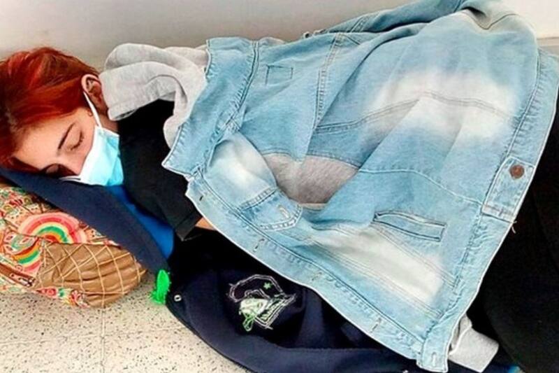 Con 22 años, la estudiante, agotada y sin recibir atención, se echó en el piso del recinto para descansar. Luego fue ingresada a una unidad de cuidado. Fue su madre quien le tomó la foto, y dijo: "Me duele que nadie hiciera nada".