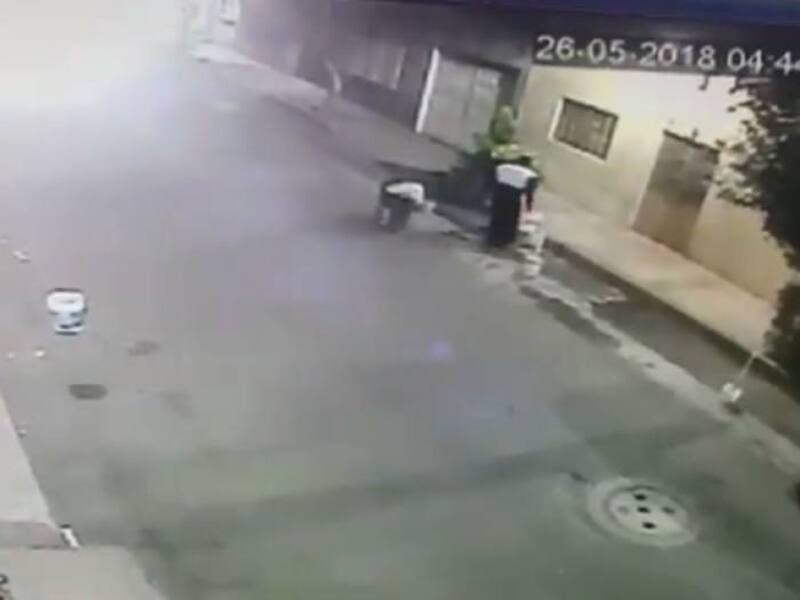 En el estremecedor video, se observa cómo el hombre trasladaba los restos de su víctima en un bote de basura.