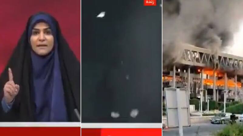 El medio de comunicación se encontraba transmitiendo los ataques con misiles balísticos israelíes contra distintos edificios de Teherán, cuando una fuerte explosión interrumpió la emisión.