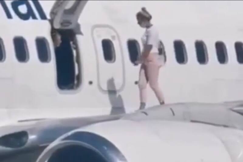 Mujer abrió la puerta de emergencia del avión y caminó por el ala porque tenía calor