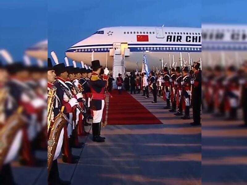 Minutos más tarde la banda corrigió el saludo cuando Xi Jinping pisó suelo argentino y fue recibido por el canciller Jorge Faurie, Diego Guelar (embajador de Argentina en China) y Gerardo Morales (gobernador de Jujuy).