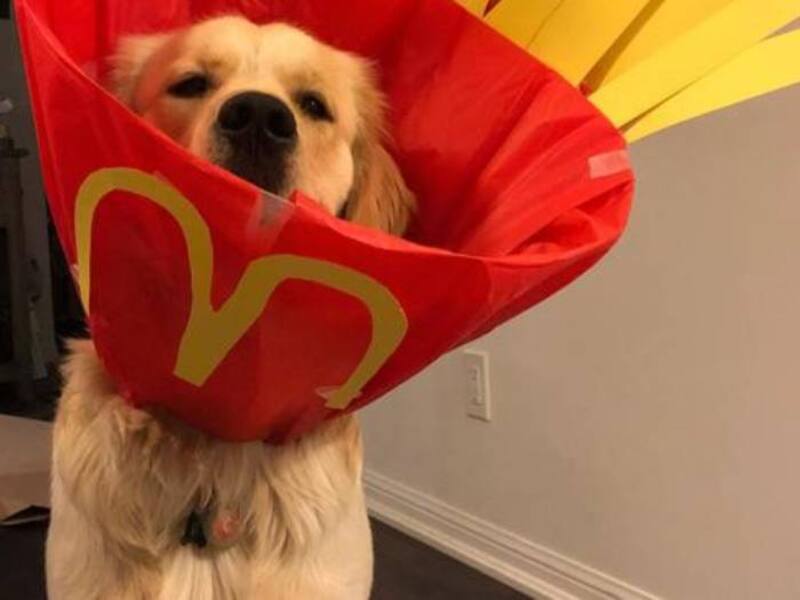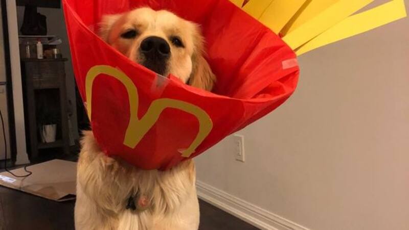Desde un paquete de papas fritas al logo de la empresa de animación "Píxar": pocos habrían imaginado que se podían recrear tantos disfraces usando el clásico "cono de la vergüenza", ese incómodo implemento que los veterinarios le colocan a los perros y gatos tras una intervención quirúrgica.